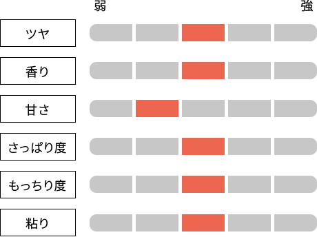 艶やかな見た目と、もっちりとした粘りが特徴です。甘み・香りのバランスがよく、