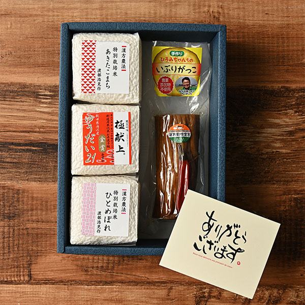 父の日ギフト 渡部浩見さんの「秋田県産いぶりがっことお米3種セット」