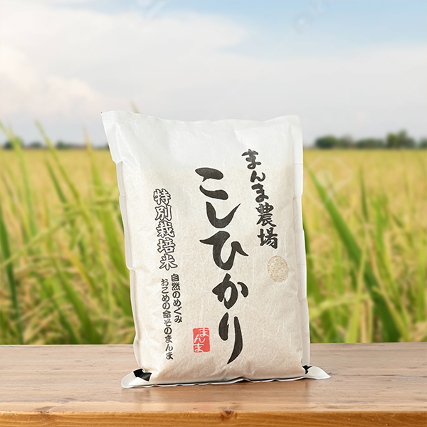 まんま農場が丹精込めて育てた「コシヒカリ」は、香り・粘り・甘みの三拍子が揃ったお米です。