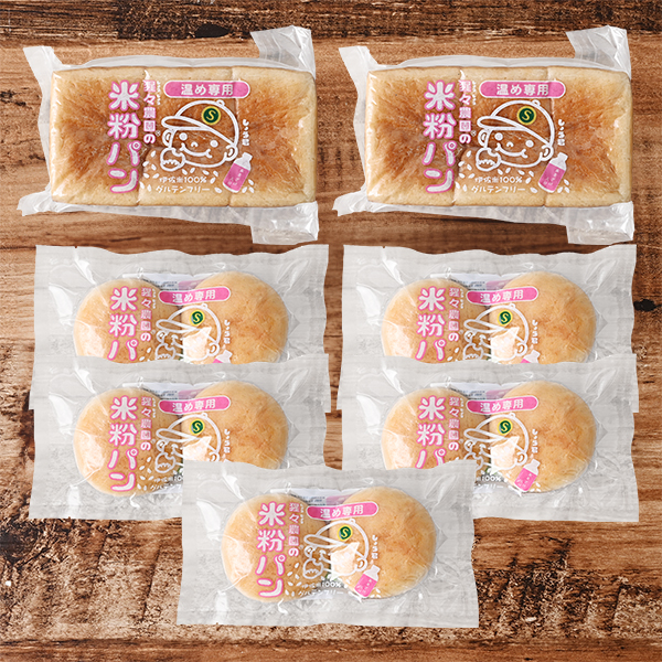猩々農園さんの鹿児島県伊佐市産米粉パンセット(角×2袋、丸2個入×5袋)
