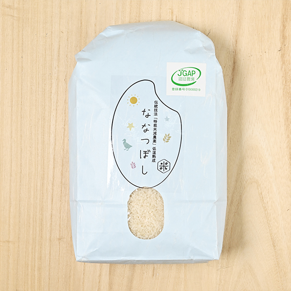 農薬や化学肥料の使用を減らすとともにJGAPを取得し食品安全・環境保全にも留意して丁寧に作られた「ななつぼし」です。艶やかでしっとりとした舌触りがあり、噛むたびに自然な甘みが口いっぱいに広がります。