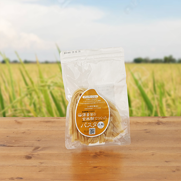ジョイントファームさんの新潟県南蒲原郡産 黄金源泉米 玄米パスタ太麺